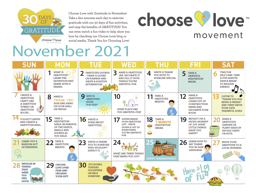 Choose Love Movement’s ‘30 Days of Gratitude’ in November